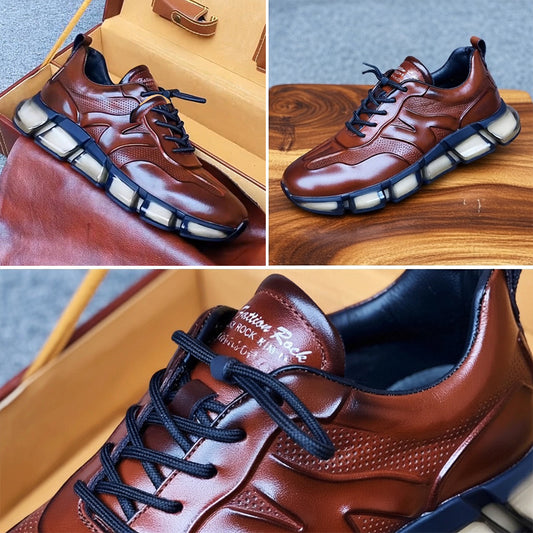 Italy Men's Breathable Casual Sneakers-Genuine Top Grain Leather Soft Soled Running Shoes