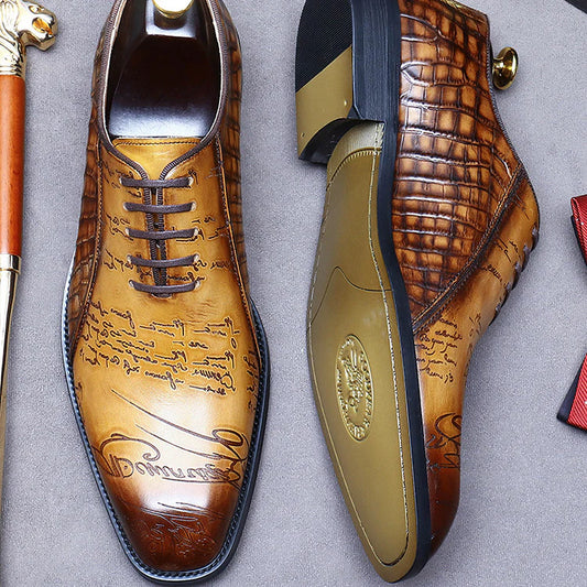Zapatos Oxford de estilo británico con firma tallada a mano