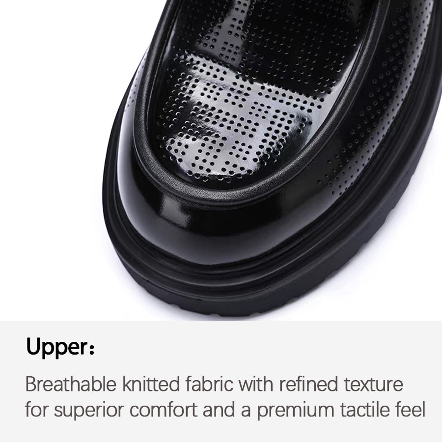 Nuevas zapatillas para correr de cuero negro con suela gruesa y botones giratorios