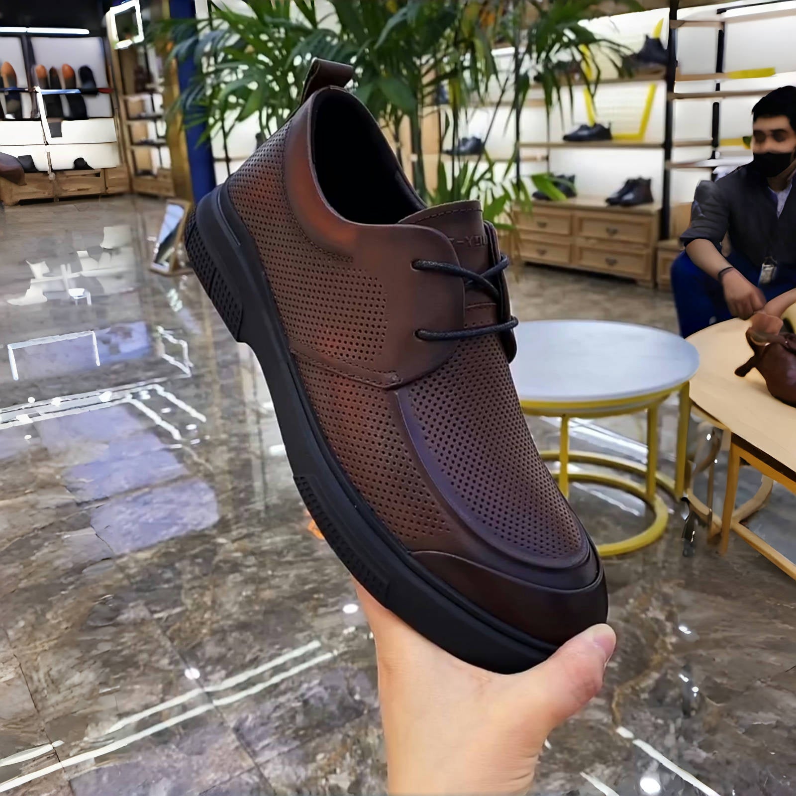 New style genuine leather breathable popcorn lightweight men's sports shoes