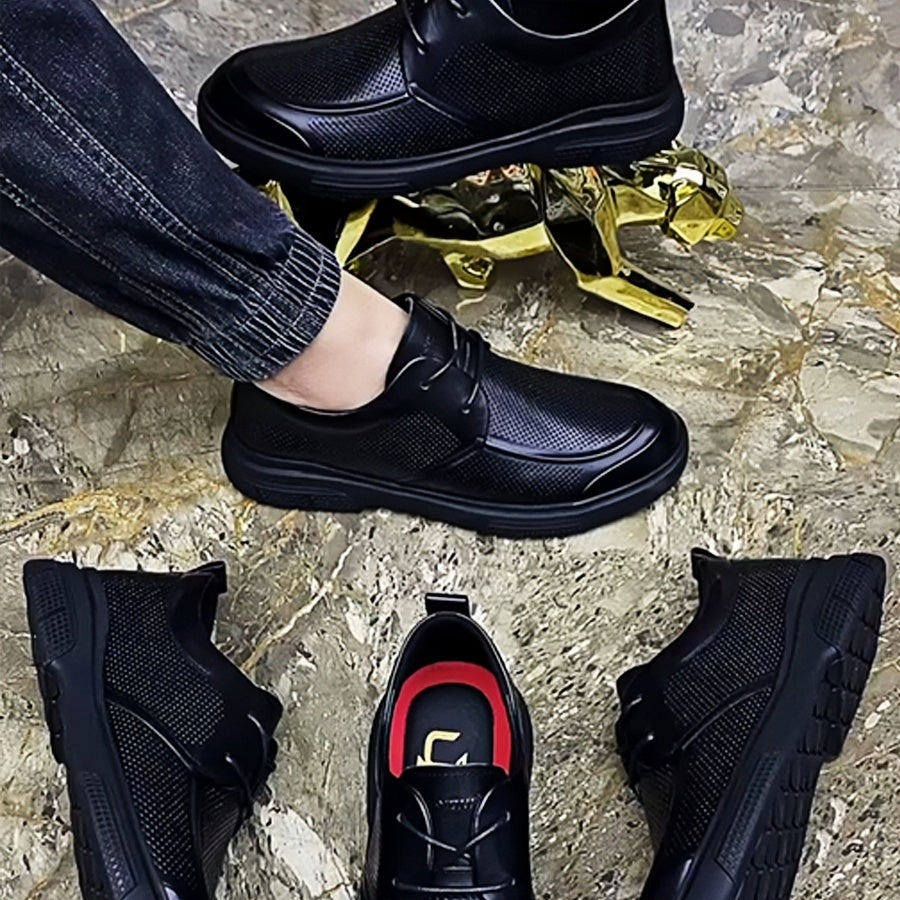 Italy Men's Breathable Casual Sneakers-Genuine Top Grain Leather Soft Soled Running Shoes